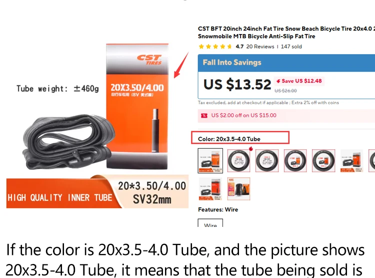 TUbe Size:20X3.5/4.0 SV32mm;24X4.0 SV32mm