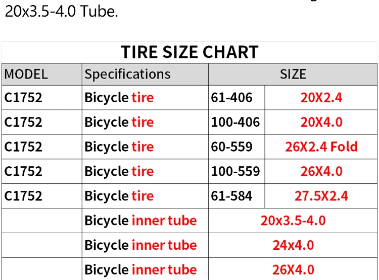 CST BFT 20inch 24inch Fat Tire Snow Beach Bicycle Tire 20x4.0 20X2.4 24x4.0 Electric Snowmobile MTB Bicycle Anti-Slip Fat Tire