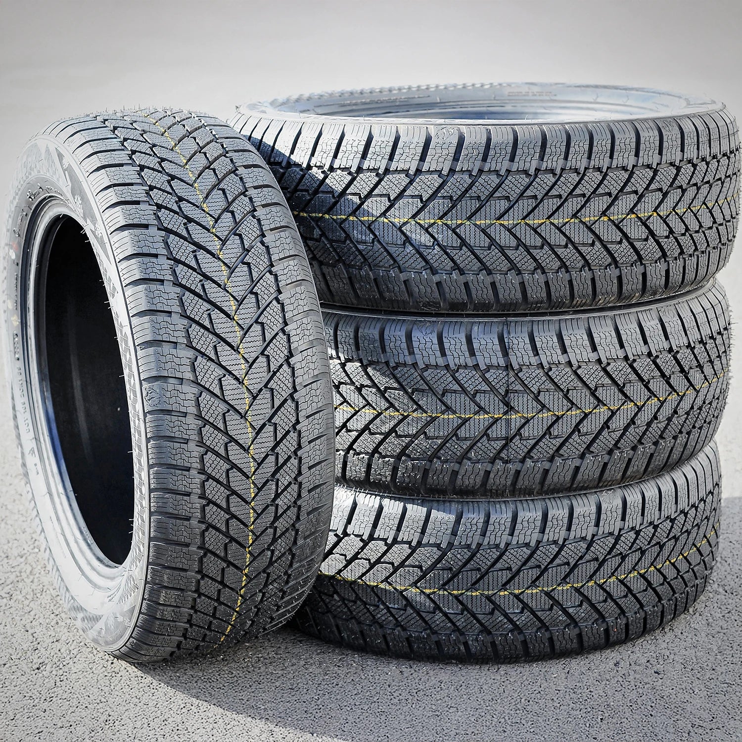 The tire boosts exceptional winter weather traction by utilizing the durable, winter compound and the detailed, directional tread. The high-density siping placement across the tread area boosts the number of biting edges gripping the road surface, which ensures the tire's ice and snow traction. The winter compound keeps the rubber flexibility in freezing temperatures, upgrading the winter weather performing ability. The circumferential grooves prevent hydroplaning by dispersing water and slush from the footprint, resulting in a safer wet weather performance.