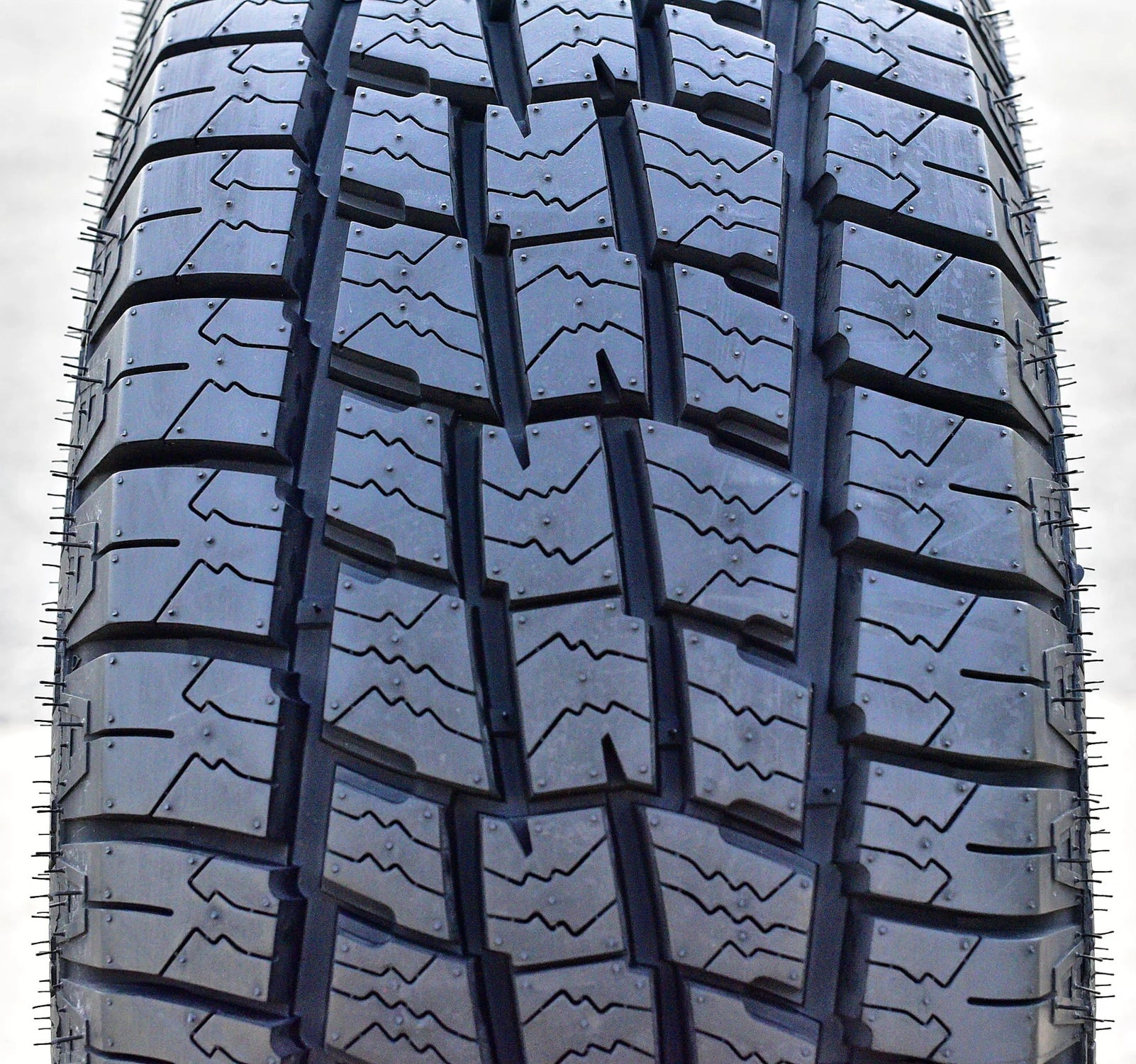 The model offers great all terrain performance. It manages to combine its durable compound with its detailed tread pattern to upgrade the on- and off-road traction. The stronger compound materials prevent premature tread wear and damage on rugged off-road terrain surfaces, while also optimizing the tire's traction on various surfaces. The tread features large, staggered blocks and a high void ratio, with an open shoulder pattern. These tread elements find excellent grip on soft, loose and uneven terrain surfaces. This tread also helps maintain a clean footprint. They eliminate mud and eject rocks stuck in the tread to keep a constant surface contact and to effectively prevent stone retention from harming the tire's casing.